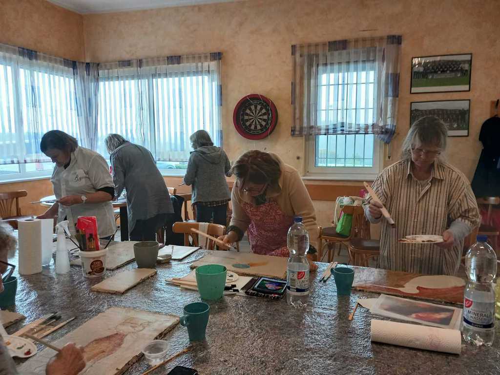Am 18. Oktober startete unser interne Workshop „Abstrakte Landschaften“ mit der Künstlerin Elvyra Gessner aus Hagen. Nach der Vorbesprechung konnten wir uns entspannt an unser Werk begeben. Drei Stunden hatten wir Zeit um unser Bild zu gestalten. Nicht alle Teilnehmerinnen haben ihr Gemälde in dieser Zeit fertigstellen können und mussten noch nacharbeiten. Wir freuen uns schon darauf im nächsten Jahr wieder einen Workshop dieser Art zu veranstalten.