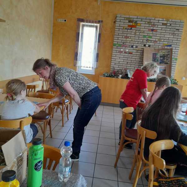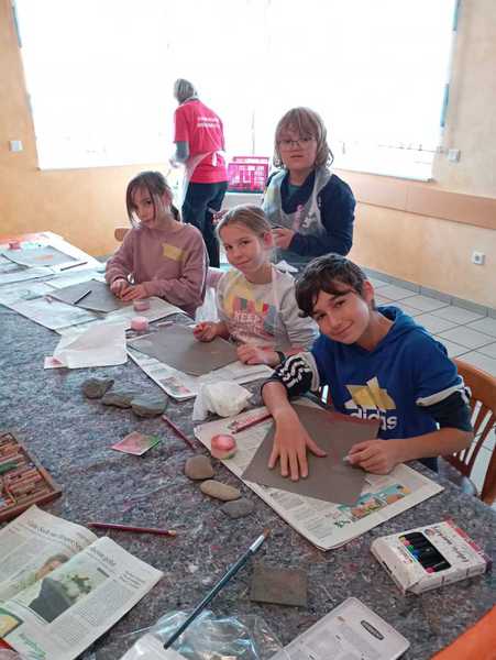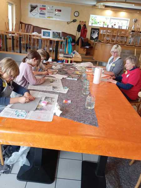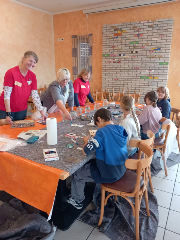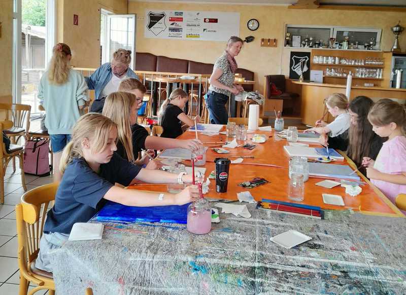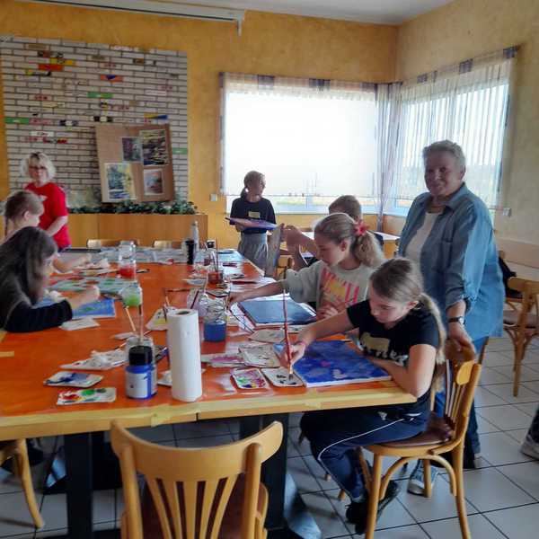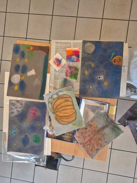 Am Donnerstag, den 16. Oktober 2025, fand unser zweiter Workshop für Kinder im Alter von 10 bis 14 Jahren im Rahmen des Kulturrucksacks NRW statt. Unter der fachkundigen Leitung von Mona Schmale erhielten die Teilnehmerinnen und Teilnehmer die Möglichkeit, ihre Kreativität beim Malen mit Kreide auf Velour auszudrücken. Diese Technik stellte eine neue und aufregende Erfahrung für die Kinder dar, die mit großer Begeisterung an den Aktivitäten teilnahmen. In einer inspirierenden Atmosphäre entstanden die vielfältigsten Kunstwerke. Jedes Kind brachte seinen eigenen Stil und seine eigene Kreativität ein. Die Kinder hatten zudem die Möglichkeit, Steine und Stöcke zu gestalten! Diese Elemente wurden in die kreative Arbeit integriert. Die Freude am Experimentieren und Gestalten war deutlich zu spüren.