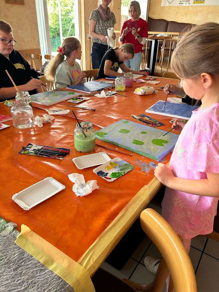 Der Startschuss für unsere Workshop-Reihe im Rahmen des Kulturrucksack NRW ist gefallen! Unser erster Workshop in 2025 stand unter dem Motto 'Malen wie Monet'. Nach einer kurzen Einführung ging es mit Pinsel und Acrylfarbe motiviert ans Werk und die Kinder tauchten in die Welt des berühmten Künstlers ein. Es wurde konzentriert und mit großer Freude gearbeitet, sodass am Ende wieder viele ganz persönliche, individuelle und ausdrucksstarke Bilder entstanden.