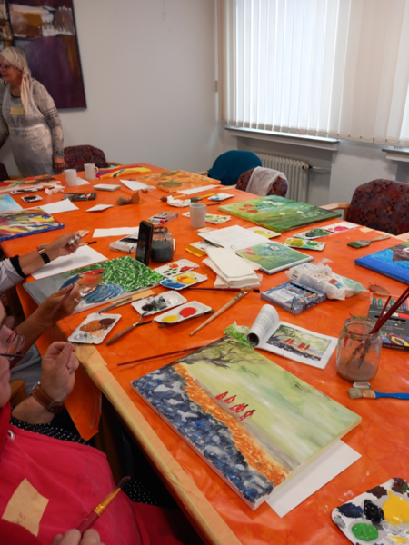Unsere erste Aktion in diesem Jahr was das Malen mit Senioren am 13. März 2025. Alle Teilnehmer:innen hatten ein Motiv als Vorlage mitgebracht und setzten dieses auf Leinwand mit Pinsel und Acrylfarben auf ihre Weise um.