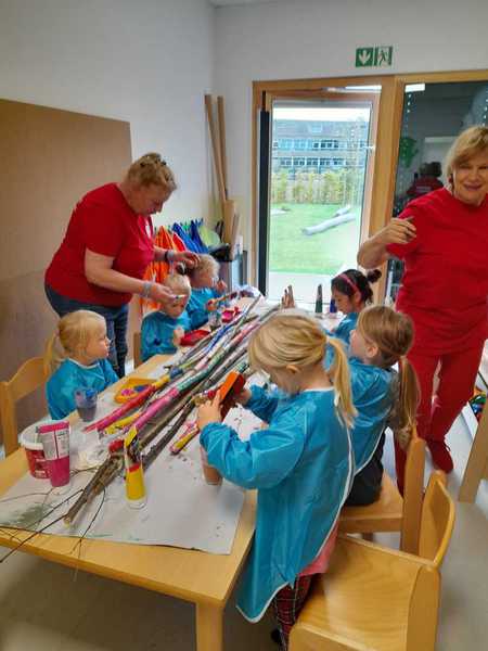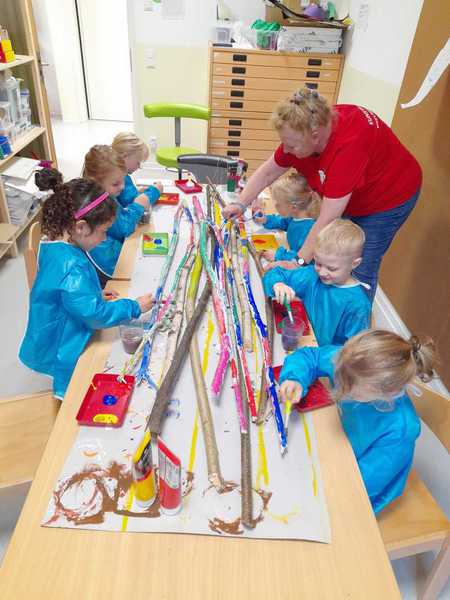 Begeisterung ihre Ideen umsetzten und die Äste mit leuchtenden Farben bemalten. Jeder Pinselstrich war einzigartig und spiegelte die Persönlichkeit der kleinen Künstler wider.